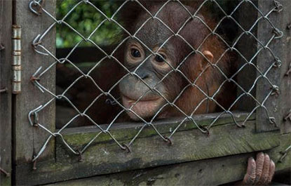 A equipe do International Animal Rescue (IAR), na Indonésia, resgatou um bebê orangotango do Sinka Zoo, em Jalan Malindo, Coral Bay.