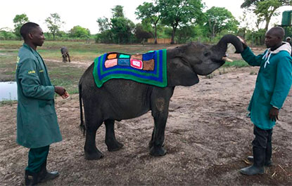 Bebês elefantes e rinocerontes usam cobertores para superar a perda das mães
