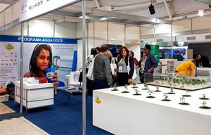 O MMA montou um estande com maquete interativa do sistema de produção integrada do PAD – que usa o efluente do dessalinizador para produzir peixes e posteriormente para irrigar a erva-sal, uma planta usada como alimento para o rebanho da comunidade, garantindo além de água de qualidade para o consumo, o aumento da segurança alimentar para as famílias atendidas.