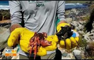 “O caranguejo está com muito óleo, provavelmente esse óleo foi o motivo da morte do animal”, declarou o coordenador de pesquisa do ICMBio, Ricardo Araújo.