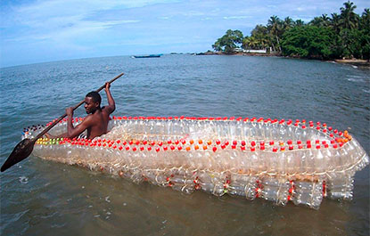 Estudantes em Camarões produzem botes reutilizando garrafas PET
