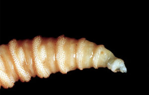 A morte é lenta e desagradável. A fêmea da mosca põe seus ovos nas extremidades de feridas abertas em animais de sangue quente. É comum que animais de fazenda recém-nascidos sejam atacados na abertura deixada pela separação do cordão umbilical. Após a eclosão, que leva no máximo um dia, as larvas, famintas, corroem o corpo do hospedeiro por dentro. Até cartilagem e ossos podem servir de alimento.