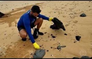 “A maior parte é piche associado com algum plástico. A impressão que dá é que ele [o óleo] conseguiu buscar uma corrente boa, associou com esse lixo marinho e aí conseguiu chegar na praia. Muita tampinha de plástico e diversos lixos marinhos”, resumiu.