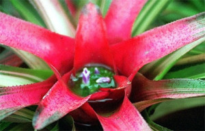 A bromélia é um ecossistema, é um ser vivo. Ela recebe a água, mas a água não fica parada