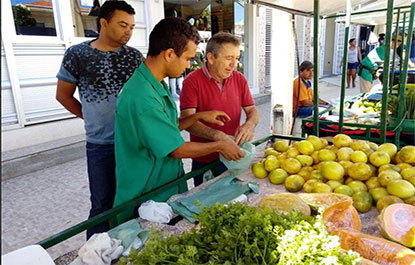 Dois agricultores que trabalham com o cultivo de maracujá amarelo, utilizando o sistema de irrigação por gotejamento, Fabiano da Silva, do Sítio Catingueira, e Lenivaldo Lourenço, do Sitio Várzea, passaram a comercializar seus produtos no local, contribuindo para ampliar as variedades de produtos à disposição dos consumidores.