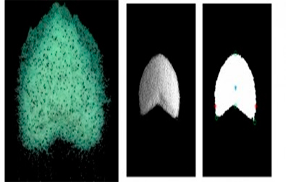 “A etapa seguinte foi criar um programa de computador, capaz de abrir imagem por imagem, e identificar cada partícula que havia se movido. Monitorando os grãos, determinamos quais haviam formado pontas e que trajetórias haviam seguido. Descobrimos que os grãos não tinham um movimento unidirecional, como se supunha. A maioria deles contornou a pilha inicial, em um movimento de tipo circular, formando as pontas”, afirmou.