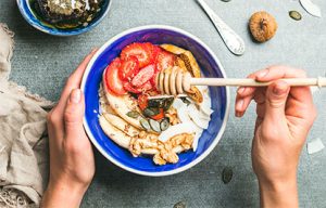 É o caso daquela colega de trabalho que, mal chega ao escritório, já abre o pacote de biscoito recheado. Ou até de quem opta pelo jejum intermitente para perder peso mas não se importa com a qualidade do que come, apenas com o horário. “Para balancear o tempo que ficamos em jejum durante o sono, a primeira refeição do dia precisa combinar carboidratos de frutas e grãos integrais; e proteínas magras, que saciam sem engordar.”