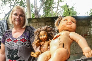 Ao lado da barreira, o vendedor organizou uma espécie de museu com os objetos mais curiosos que já retirou do Atuba graças a seu invento. Ali estão um fogão, o tanque e o motor de uma máquina de lavar roupas, uma cadeira infantil para automóveis, tubos de imagem de televisores antigos, um aquecedor elétrico e algumas bonecas –essas a mãe dele, Marizete Saldanha, pacientemente restaura e coloca à venda no brechó que possui, no bairro.